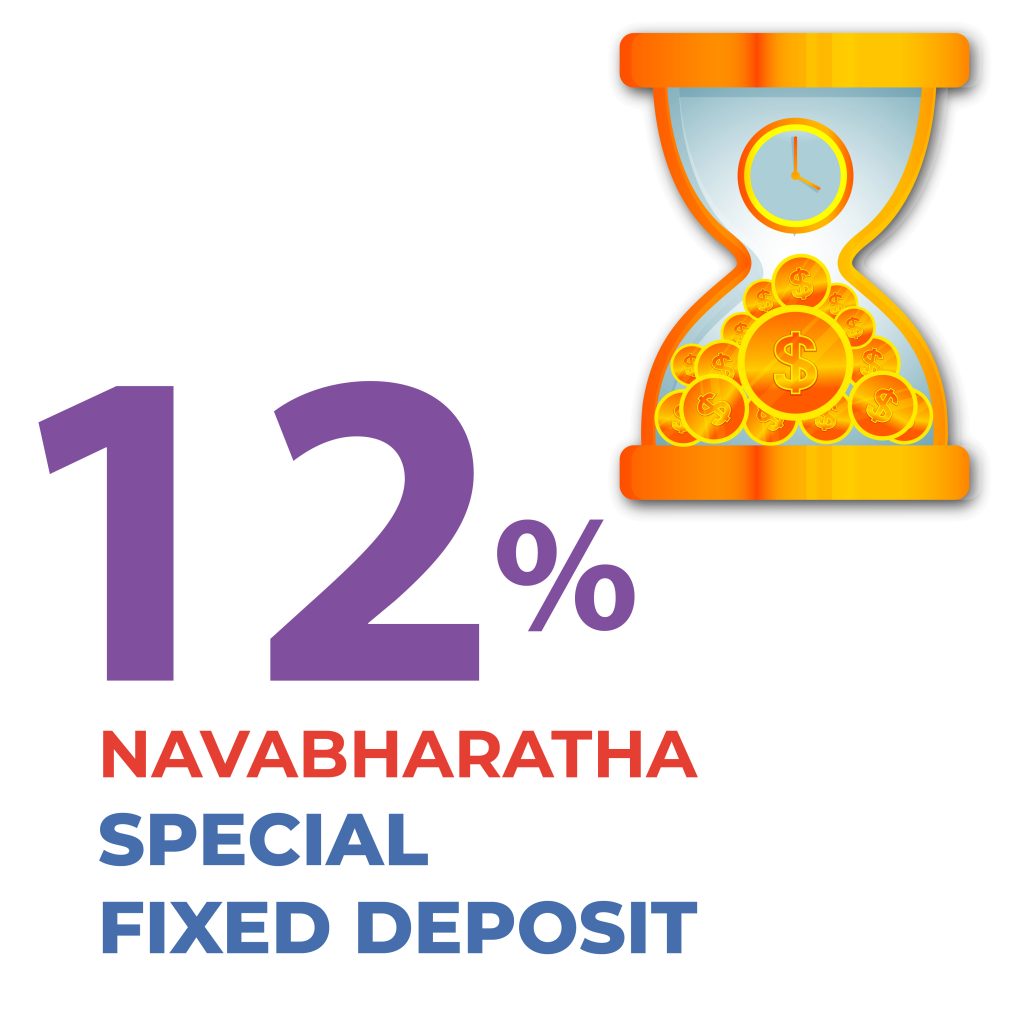We at Navabharatha Souharda Co-operative Ltd, offers special rate of interest @ 12% per year for minimum lock in period of 2 years and above. The interest amount will be credited to your savings account directly every monthly.